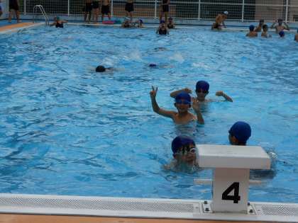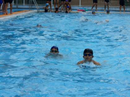 1年生は頑張って,25Mを泳いでいます。