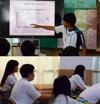 いろいろなデータを使いながら,その知識の必要性を先生が説明します。