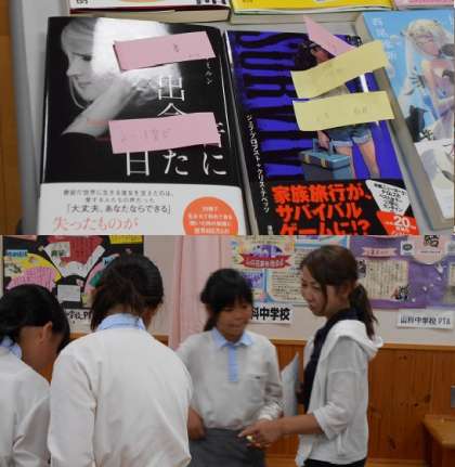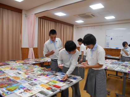 前半は1、2年生の委員が中心です。みんな手際よく付箋を貼っていきます。
