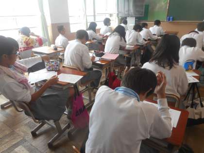 教室に行ったときは,ちょうど夏休みの課題についての説明でした。