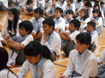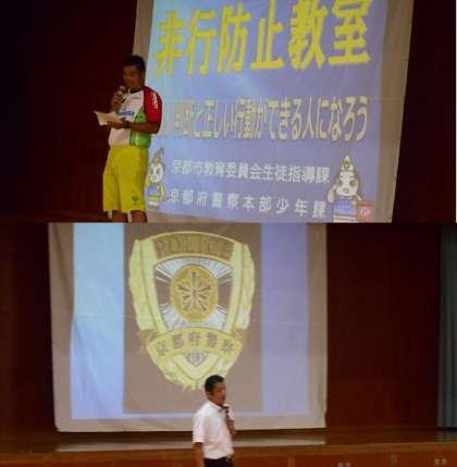 講師には京都府警察から教育委員会の生徒指導課に人事交流で来られている担当課長の先生をお迎えして,体育館で講演をしていただきました。