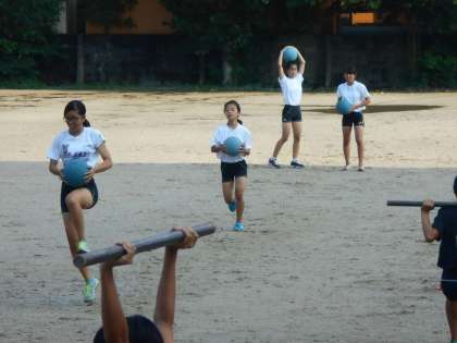 陸上部の短距離の選手達がグラウンドでトレーニングです。