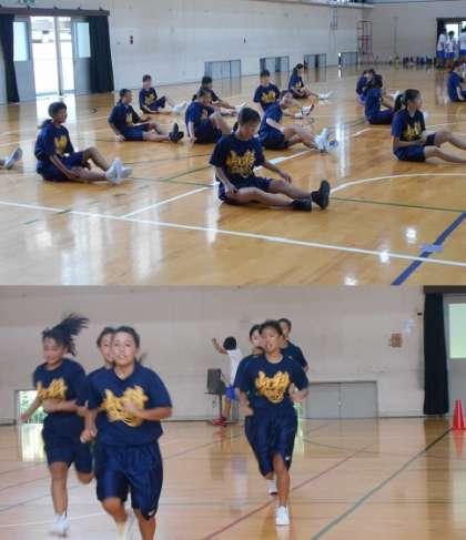 体育館では女子バスケット部が練習を再開しました。8月初旬の新チームの山科カップに優勝するなど,順調に新チームでスタートしているようです。