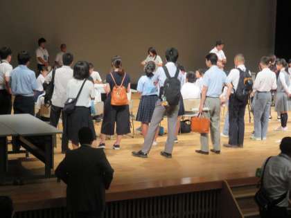 8月19日。京都市中学校生徒会サミットが,北区の北文化センターで開催されました。本校からは生徒会長をはじめ生徒会本部の5名が傍聴に参加しました。