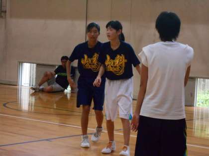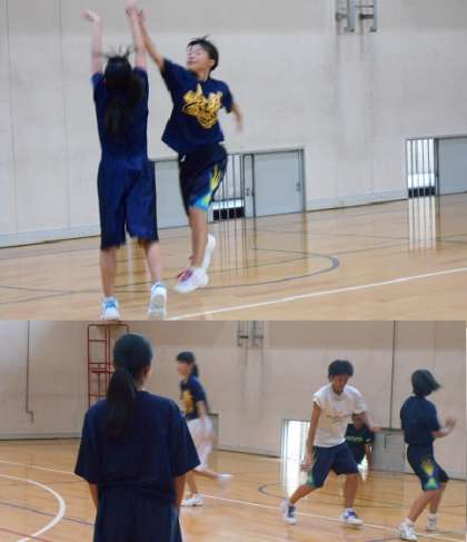 体育館ではもう一つ,女子バスケット部が熱心に練習をしています。3年生も練習の応援に来ていました。