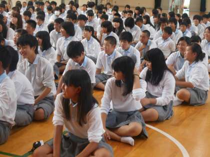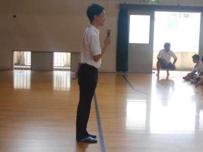 全校集会の後、2年生が残って学年集会がもたれ,改めて先生の紹介が行われました。先生も早くみんなのことを知るように努力しますと仰ってました。皆さんもどんどん先生に声をかけて下さい。