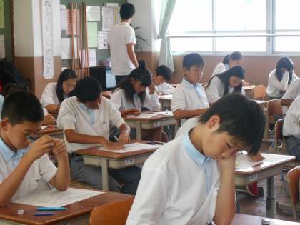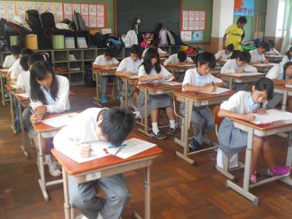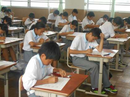 1年生の3組と2組のようすです。テストは4教科が実施されました。