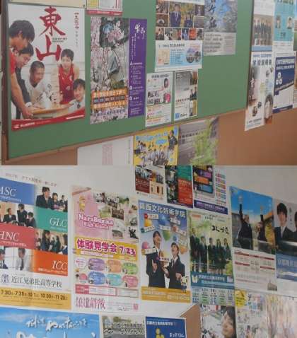 3年生校舎の階段は,写真のように高校のポスターで埋め尽くされています!