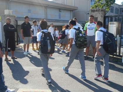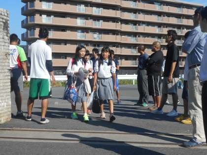 まだまだ猛暑日が続きます。登校する生徒も学校に着く頃には,汗びっしょりになっています。先生方もたくさん「おはよう」と声をかけに出てきてくれています。