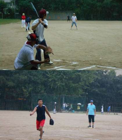 今年も本校グラウンドで,山階南学区のソフトボール大会が行われました。開会式直後から小雨が降り出しましたが,皆さん元気にプレーされてます。