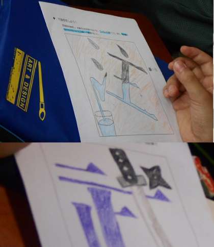 夏休みの課題でもあった,「新しく作った漢字」のレタリングを約束事に従って完成させています。