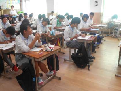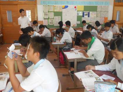 2年4組の英語のようすです。「 to 〜 」を使った文の学習です。