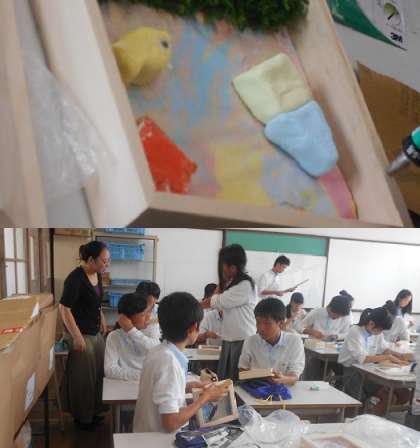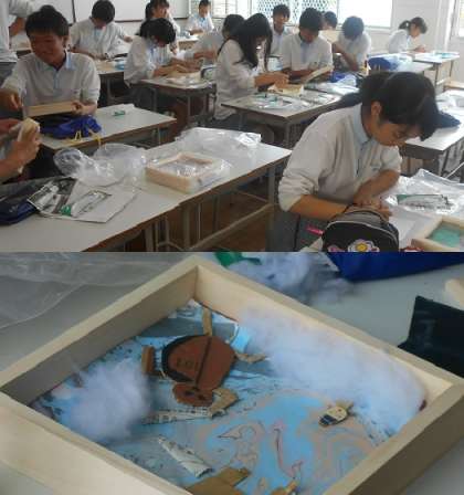 2年生は「ボックスアート」の作成です。そろそろ完成に近づいてきました。