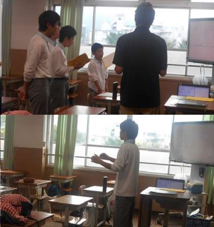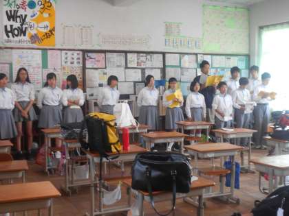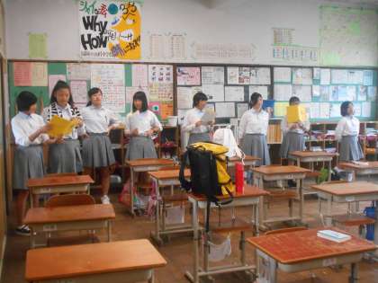 3組では担任の先生も,生徒と一緒に歌って練習です。
