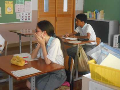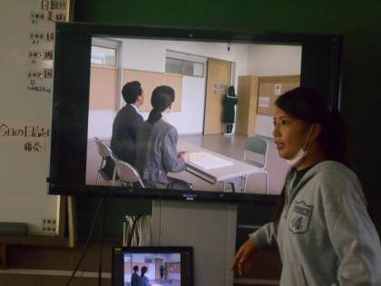 B組(3年生)では,進路に向けて,面接のマナーを勉強しています。