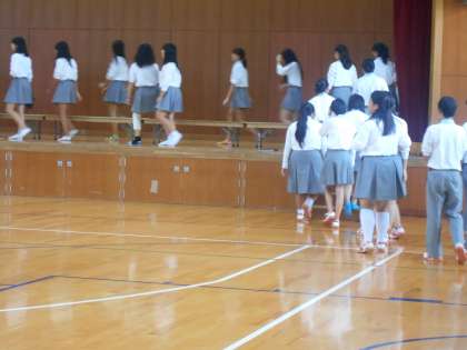 今日は本番に向けて,再度入退場の練習をして,各クラスが歌う予定です。