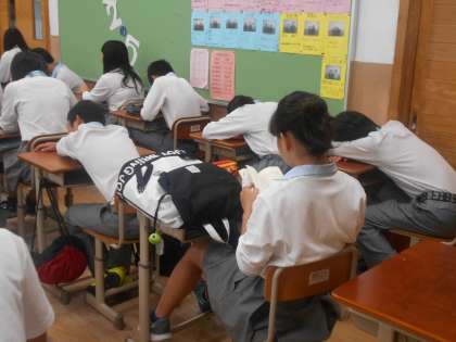 2年5組のようすです。合唱の朝練習で疲れてる人もいるのかな?