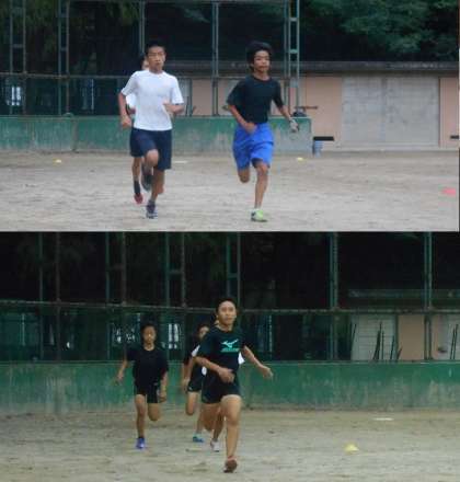 陸上部は19日の秋季大会に向けて練習です。合同部活の音羽中の生徒も本校生徒と一緒にしっかり走っています。