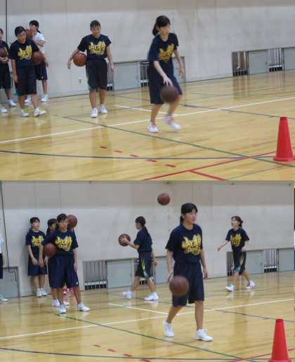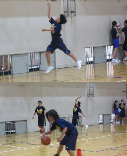 体育館では,こちらも2位で予選を通過した女子バスケット部が練習です。