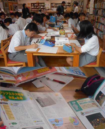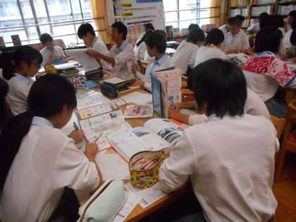 社会科の2年生では,今年も図書館を使った授業に取り組んでいます。