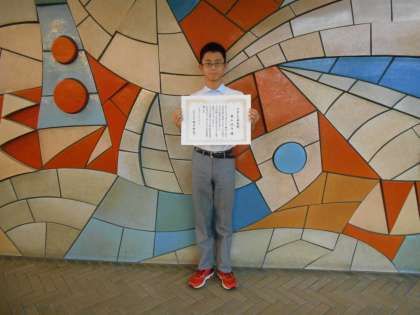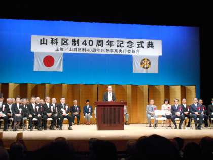 10月1日、京都市東部文化会館で山科区制40周年記念式典が行われました。その中で、個人・団体を問わずスポーツや文化活動において全国大会上位3位以内の方や芸術の活動成果を山科区の各種事業で披露した方に<やましな未来賞>が贈られました。山科中学校からは1年生の豊山就介君がJOCジュニアオリンピック夏季水泳競技大会100M平泳ぎ第1位、3年生の濱崎優友君がウエイクボード・プロウエイク日本ツアーランキング第1位、団体では百々学区のゲートボールチーム・DoDoフェニックスがジュニアゲートボール大会全国2位という素晴らしい成績で選ばれました!