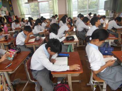 1年4組の朝読書の時間です。テストも近づき落ち着いた環境です。