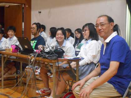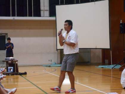 休憩時間では司会の面々もホッとくつろいだようすです。休憩の終わりには東田先生のパフォーマンスが登場です。