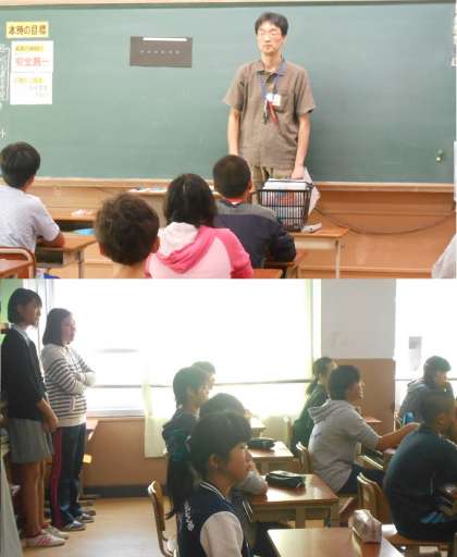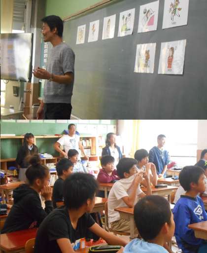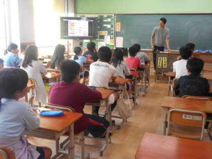 山階南小学校の体験です。写真の教科は英語と家庭科です。