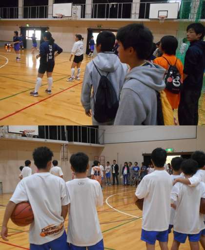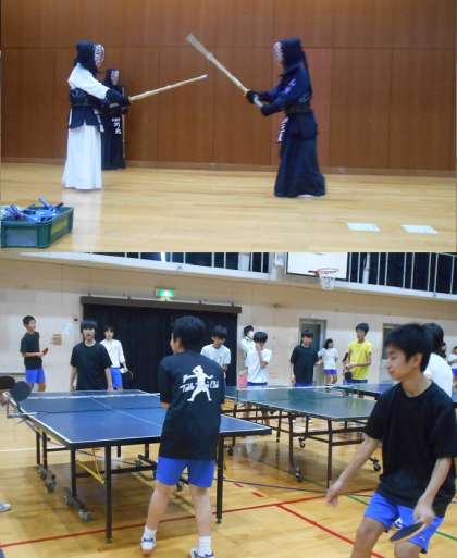 体育館での見学です。男女バスケット,剣道,卓球,女子バレー部が活動しています。