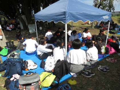 秋晴れの嵐山東公園で駅伝大会が開催されました。当日は自転車で応援に行きましたが,到着したときは汗が噴き出るくらい暑い日でした。