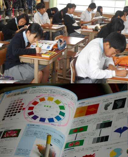 今日は色の明るさと暗さ。そこからイメージとして感じるところなどを,実際に色を塗りながら考えています。