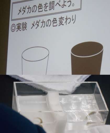 3組はメダカの特徴についてです。今回はメダカ自身が体の色を変える!!ということを観察で確かめています。