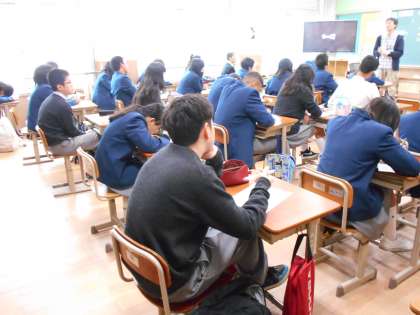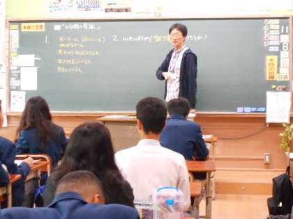 2年生は友情をテーマに「4分間の奇跡」というバスケットボールを題材にした資料を使っての授業です。