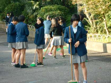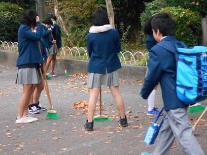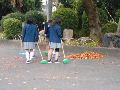この時期は落ち葉が多く大変ですが,黙々と掃いてくれていますね。