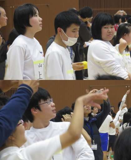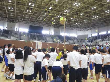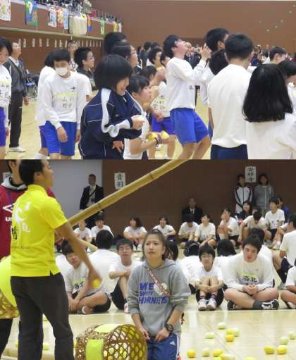午後の最初の種目は玉入れです。山科中は黄色組で,90数個をカゴに入れましたが,一位の組は,130個を越えていました。