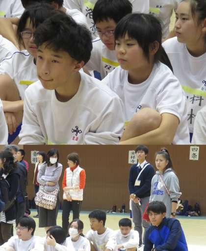 すべての競技が終わって閉会式です。学校に戻る前に,症状を持って,みんなで記念撮影をしました。