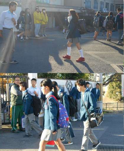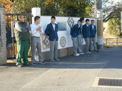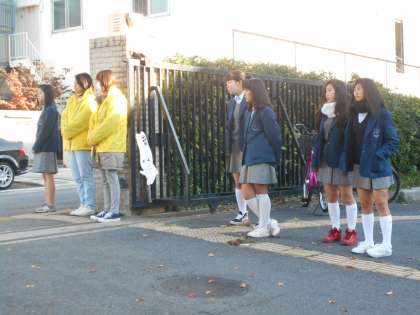 PTAあいさつ運動と生活委員会の3年生のあいさつ運動のようすです。