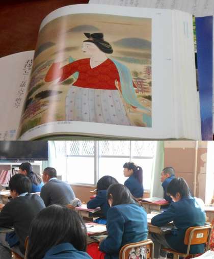 古典の分野で,額田王の詠んだ和歌を題材に学習しています。