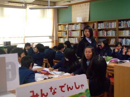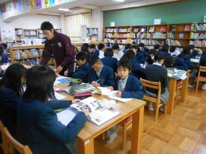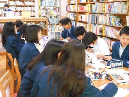 1年生の国語では図書館を使った授業です。先ずは自分がスピーチをするテーマを探します。