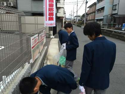 11月21日<月>放課後、生徒会本部役員が学校の周りの山階南学区を歩いて清掃活動をしてくれました。1時間ほどでしたが、地域の方に<頑張ってるね>などと暖かい声かけをして貰いながら、沢山のゴミを集めてくれました。自分たちの住む街をきれいにしよう、自分たちの学校をきれいにしたいという嬉しい活動でした。