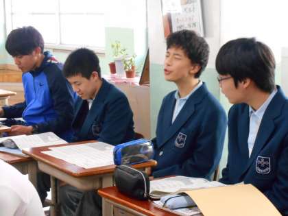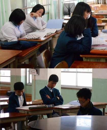 今日はみんなで「カリブ夢の旅」を歌って練習しています。1年生が以前に合唱コンクールで雨たっと事も覚えている生徒もいて,難しいよと友達にアドバイスもしていました。