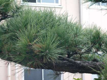 今年もお正月に向けて,管理用務員の森田さんが玄関正面の築山の松の剪定をしてくださっています。
