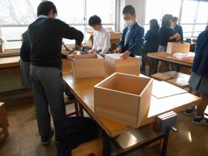 1年生は道具箱を作っています。早くできた人も協力して作業をしていました。