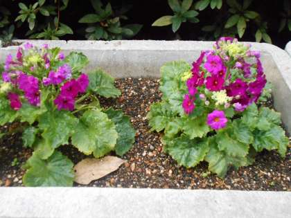 園芸部が玄関の築山に花を植えてくれています。