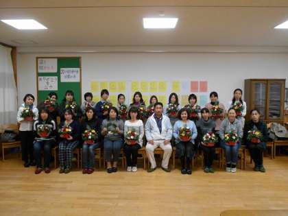 12月7日<水>10時から、いきいき交流ルームでPTA文化教室<フラワーアレンジメント教室>を実施しました。講師、深川忠嗣氏から季節の様々な花でクリスマスのアレンジメントを教えて頂きました。参加されたお母さん方は熱心に、また試行錯誤しながら楽しく制作されていました。最後は完成した作品を持って全員で記念撮影。本当に和やかで楽しい、あっという間の2時間でした。