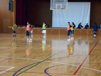 女子バスケット部は花山中学との合同練習です。