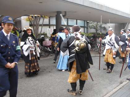 大石内蔵助ゆかりの山科区のお祭りです。山科区長を初め、山科警察署長、山科消防署長、各自治連会長さんらも行列の先頭を歩いていられます。