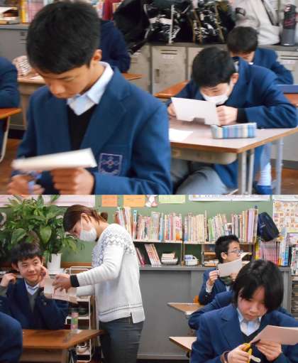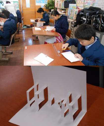 8組では「飛び出すカード」の制作をしています。いろいろ工夫して,切れ込みを入れています。
