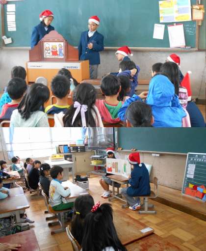後半の時間は2年生の各教室です。2年生にもなると、さすがに所々で突っ込んでくれます。