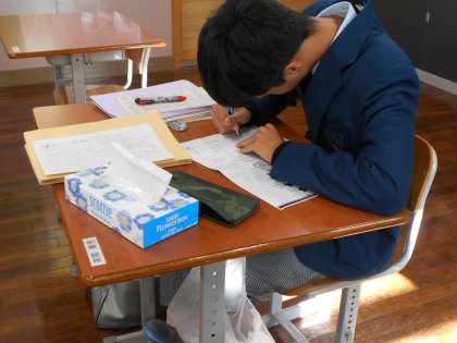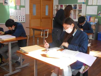 3年生のBクラスでは,テストなどで使うプリントで確かめを練習しています。